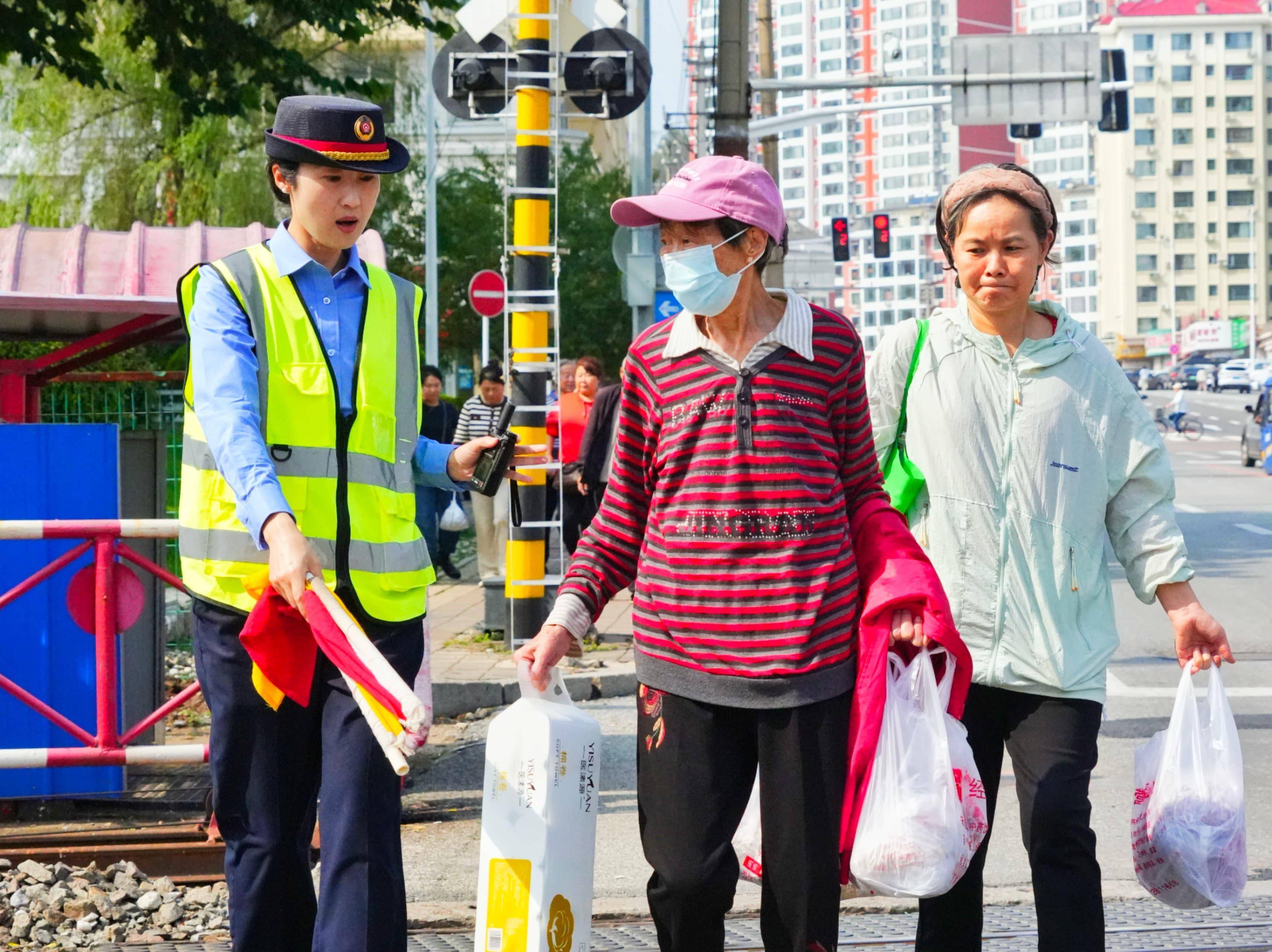 8时55分,对讲机里传来清晰的联控声:“沈丹线192公里道口,34867次列车接近!”王志刚拿起防护装备,快步走出道口房。“麻烦大家注意安全快速通过,火车马上到了!”他挥着手中的信号旗,先帮一位推着婴儿车的大姐把车挪到安全区,又拦住想冲过道口的电动车骑手:“师傅再等等,就几分钟,安全第一!”