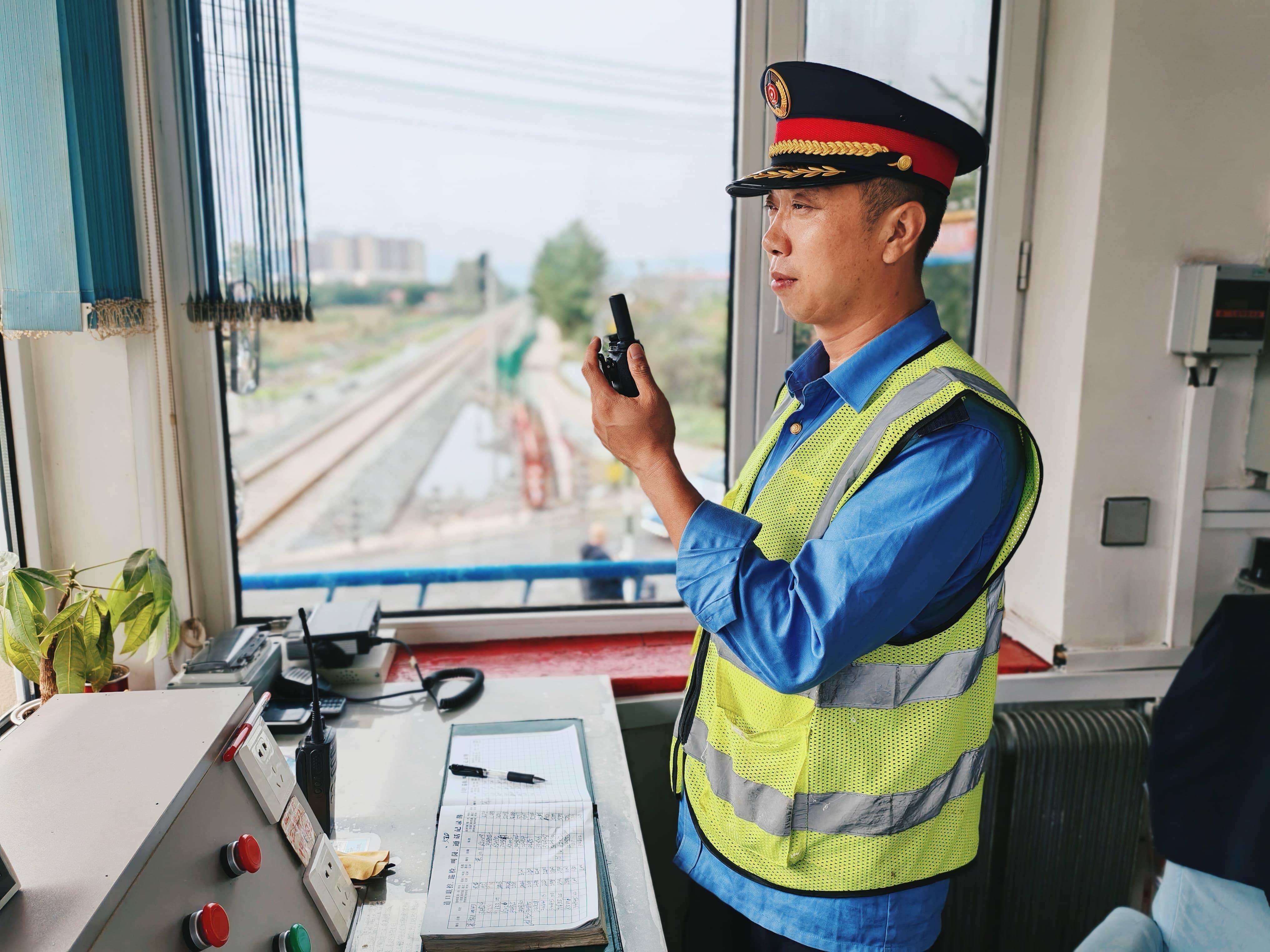 当天值守的道口员王志刚和张路,不到7点多就到岗了。两人先把道口房外的安全警示牌擦得锃亮,又绕着道口进行设备检查。“假期人多,得提前把‘家底’摸清,不能出半点岔子。”王志刚一边说一边检查道口设备情况,耳朵还紧紧贴着对讲机,生怕漏过行车指令。
