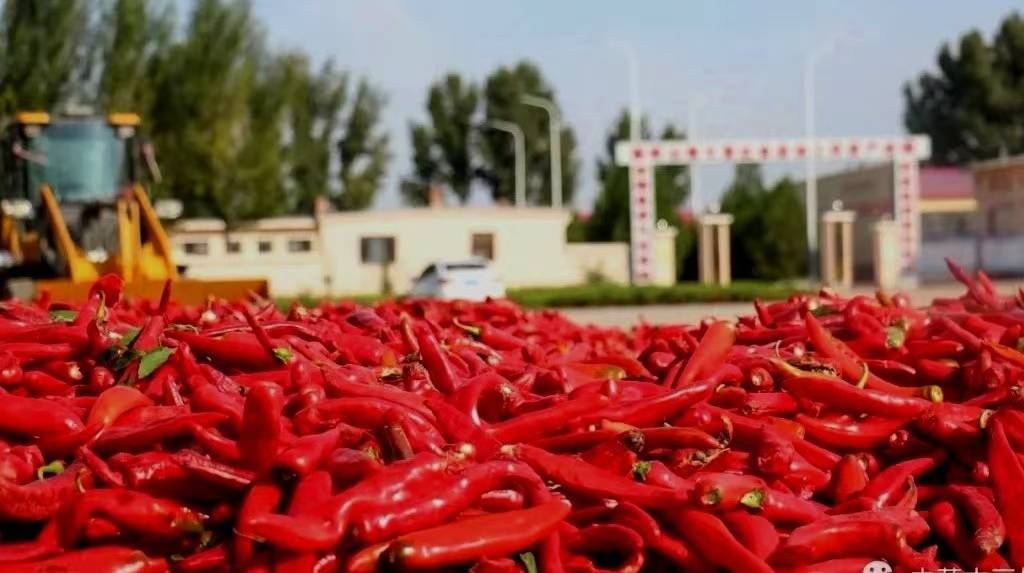 乌拉特中旗德岭山镇四义堂村辣椒丰收。新华社记者 李云平 摄走进巴彦淖尔市乌拉特中旗德岭山镇四义堂村辣椒种植基地,红彤彤的辣椒挂满枝头,种植户忙着组织工人采摘、打包辣椒,农机手驾驶拖拉机及时把采摘好的鲜辣椒转运到收购站。种植大户杨建民告诉记者,他流转了2150亩土地,采用“工厂化育苗+机械化移栽”的方式种植辣椒,采摘好的辣椒经过过秤、装车运往附近的工厂加工。