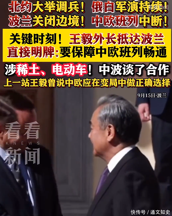 9月15日,中国外交部长王毅访问波兰,这次访问是一次试图修复的外交努力,双方还签署了一份文件,波兰承诺保障中欧班列的通行安全。